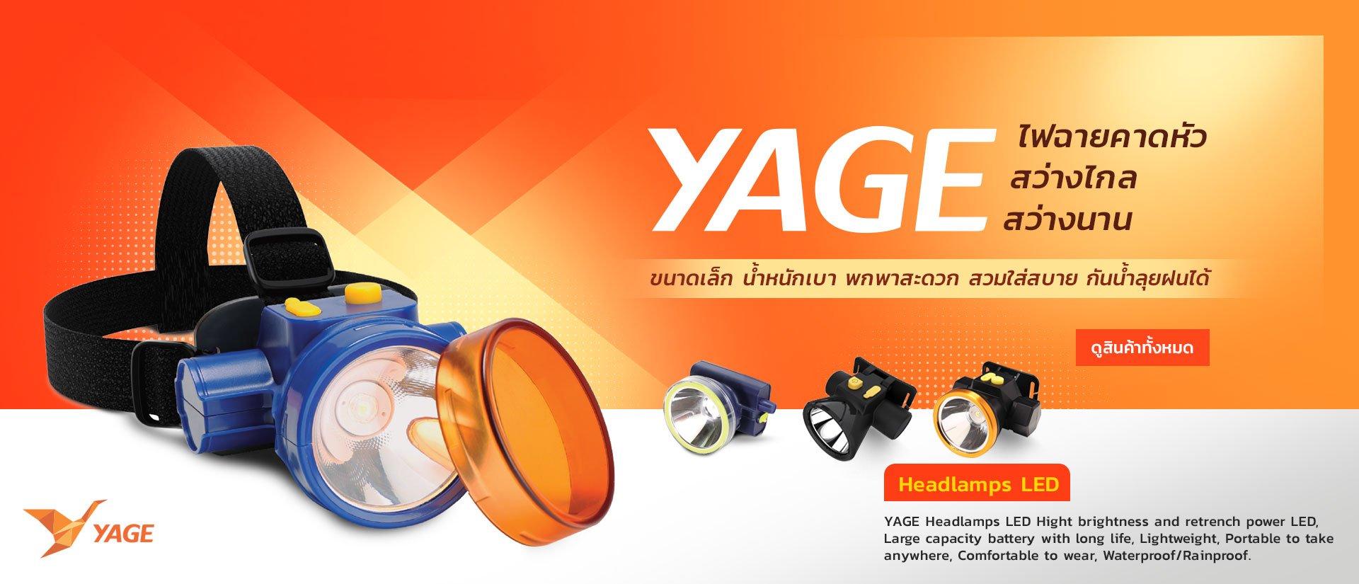 ไฟฉายคาดหัว YG-5027 (แสงขาว / แสงเหลือง) 1800mAh. สายชาร์จ AC
